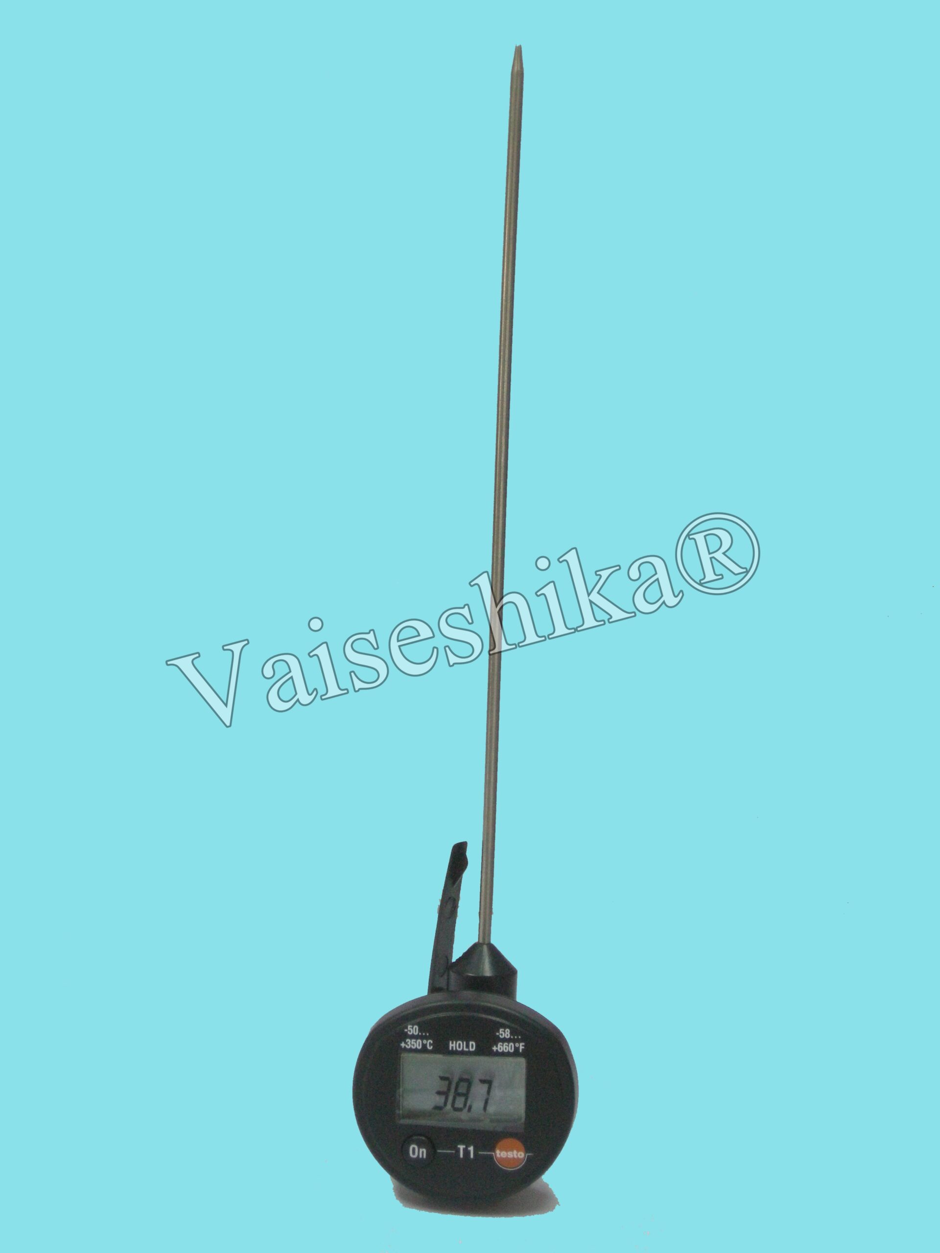 Vaiseshika offers range of Infrared thermometers which have been designed to meet the industrial calibration requirements and temperature measurement needs at competitive cost. The instruments are hand held, compact, rugged and portable. When it comes to temperature measurement technique where a combination of simplest control and high measurement accuracy is required, infrared thermometers will always be the first choice. Infrared thermometers allow users to measure temperature in applications where conventional sensors cannot be employed. Specifically, in cases dealing with moving objects (such as rollers, moving machinery, or a conveyer belt), or where non contact measurements are required because of contamination or hazardous reasons (such as high voltage), where distances are too great, or where the temperatures to be measured are too high for thermocouples or other contact sensors. The critical considerations for any infrared thermometer include field of view, type of surface being measured, and spectral response. Other considerations include response time, environment, mounting limitation, viewing port or window applications, and desired signal processing.