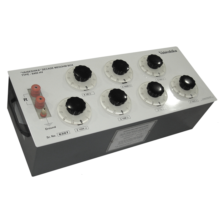 Vaiseshika has designed and manufactured a High Stability Megohm Resistance Standard Simulator upto the value of 1000 Gigaohm at an accuracy of ± 5%. The Simulator can withstand 5000 Volt DC and is having versatile applications for the calibrations of Insulation Testers, Meggers and High Voltage Breakdown Testers. This instrument has been designed For-the-First-Time in India by an Indian Company.