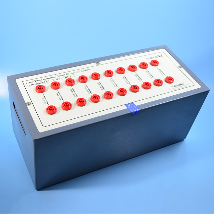 Vaiseshika has designed a Fixed Value Insulation Tester Calibration System which can be suitably used for the purpose of calibration & testing of Insulation testers and megohm meters with impressed test voltages upto 5000 volt. This instrument provides single point fixed high resistance values anywhere between 100 kohm to 10 Tera ohm. The fixed point values can be selected by the customer. Custom built instrument can also be designed and manufactured, by Vaiseshika, for the calibration laboratory. The instrument is constructed in metallic / rugged high strength polymer case, for field calibration.